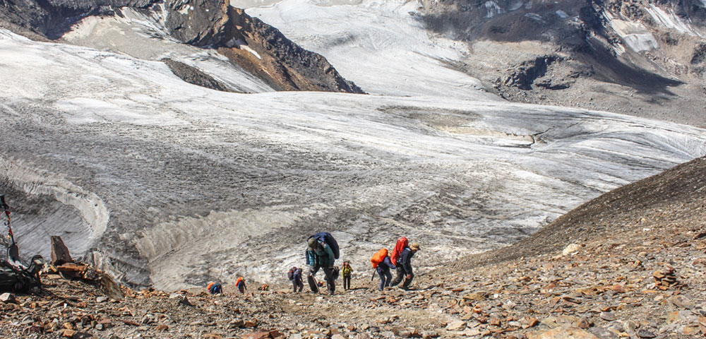 - Ropes, Helmet, Ice axe, Harness, Gaiters & cramponsup to (if required)